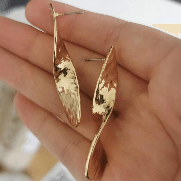 Long twist drop earrings in gold tone. Elegant shape with movement. Makes a lovely gift. Elegant and easy to style jewellery.
